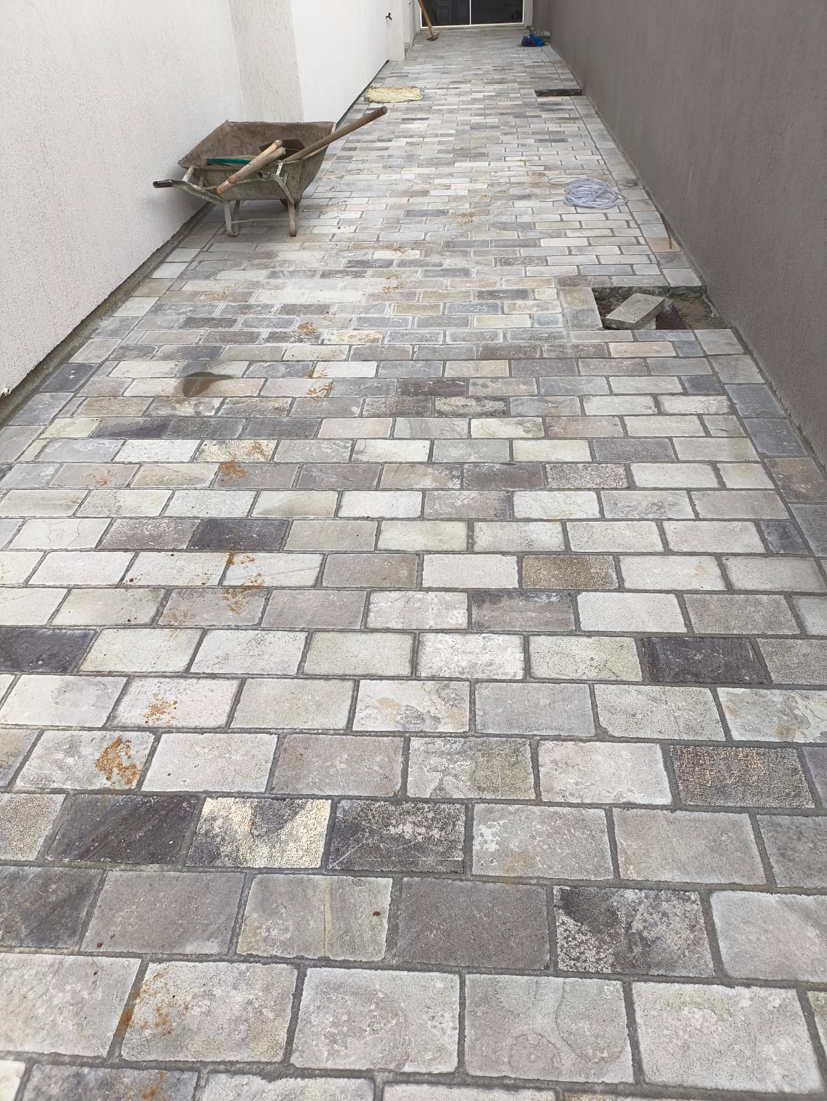 Pavimentação de ruas, calçadas e pátios com paralelepípedos e basalto em Vacaria, RS.